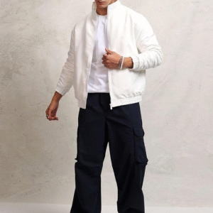 Mens Lightweight White Polyester Bomber Jacket