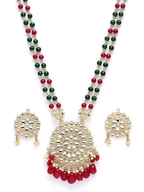- Gold Plated Red and Green Beads Kundan Rani Haar Necklace Set for Women. Our products are designed with high-quality Kundan Stones and these products are enhanced with plating that are skin-friendly & with love to reach your heart.