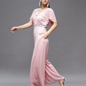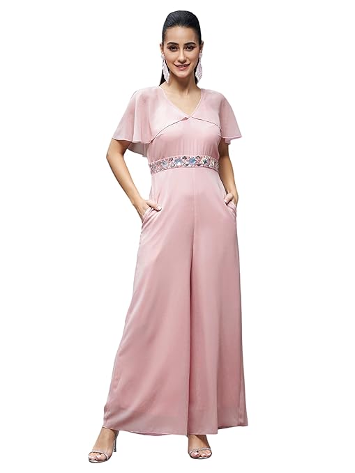 Women’s Georgette V-Neck Cape Solid Layered Regular Jumpsuit